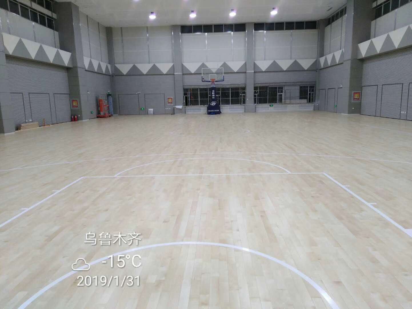 2019年2月份歐氏地板承接新疆空中交通管理局-楓木單龍骨946平米籃球場(chǎng)木地板項(xiàng)目竣工。